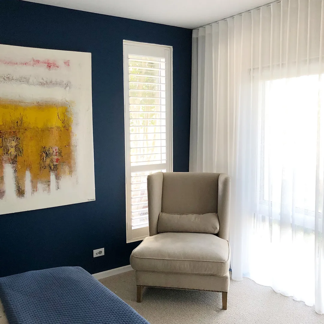I found the measuring, ordering and installation processes straight forward thanks to the supporting videos and guides. I’m thrilled with the result. The shutters on one side look fantastic – both inside and from the outside. And the layering of the Bali sheer with the blockout blind provides an elegant look along with great light control. Automation of the blind really adds a touch of luxury and is also super-practical too.