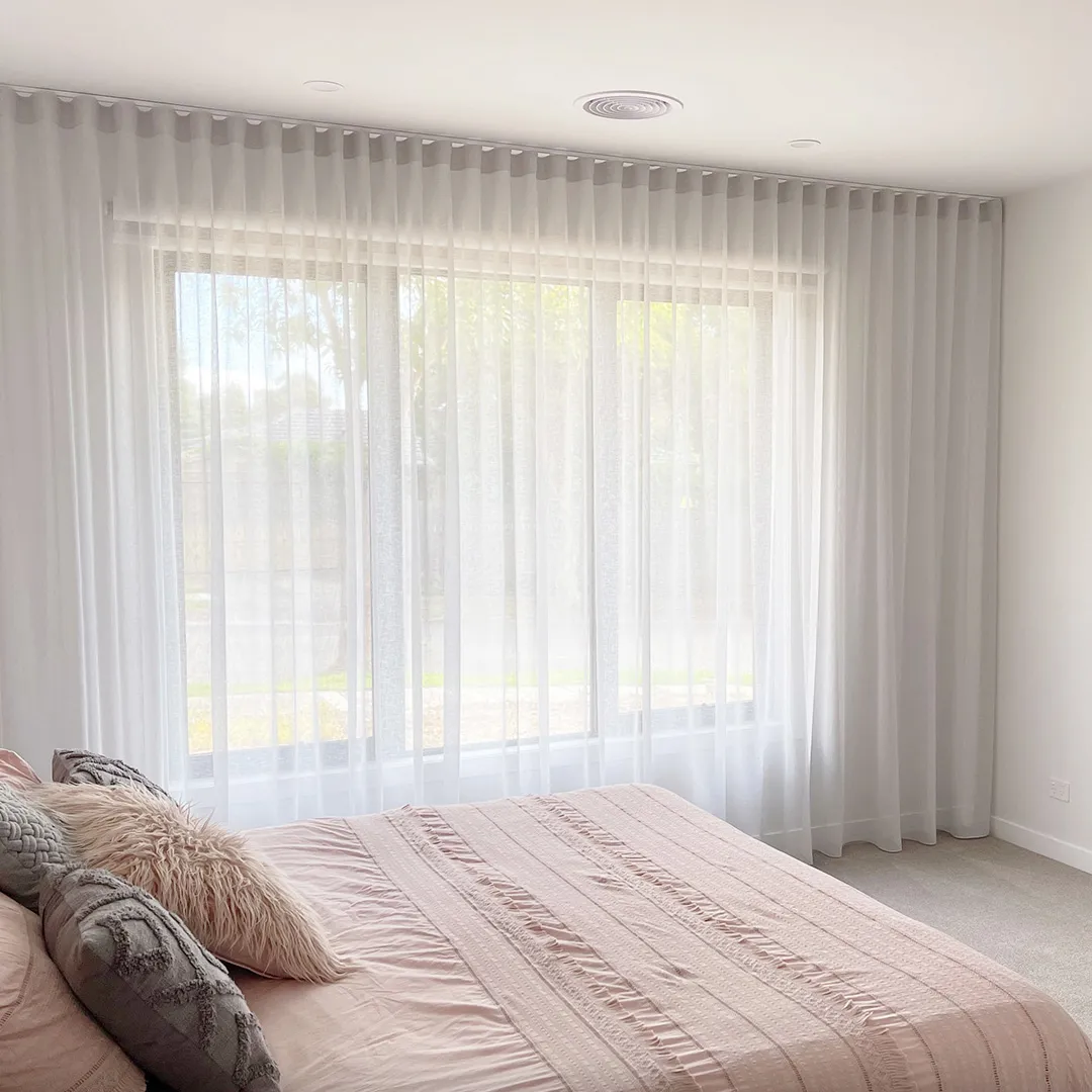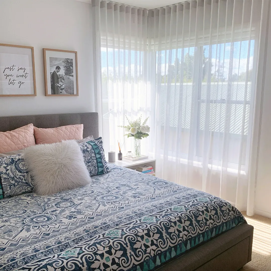 We purchased our first 1970s ‘reno home’ in June 2021 with the goal of bringing it into the modern era. It came with light pink walls, candelabra wall sconces and heavy cream curtains attached to pelmets throughout the house. The house has higher than normal ceilings so we decided that ceiling mounted sheers would be the best option, giving the illusion of even taller ceilings. After doing all of our research, we ordered samples from iSeekBlinds, measured and then ordered our curtains. Michael’s instruction video on how to mount corner curtains was a god-send as we never would’ve thought to do it this way. After having such a good experience with iSeekBlinds, we then decided to order Plantation Shutters for our ensuite. These were so easy to put together and install ourselves. They’ve really given us the privacy we were after, whilst still letting in plenty of light and looking stylish at the same time. We are beyond thrilled with the outcome and feel it has completed our updated Master Bedroom and Ensuite. Now to tackle the rest of the house!