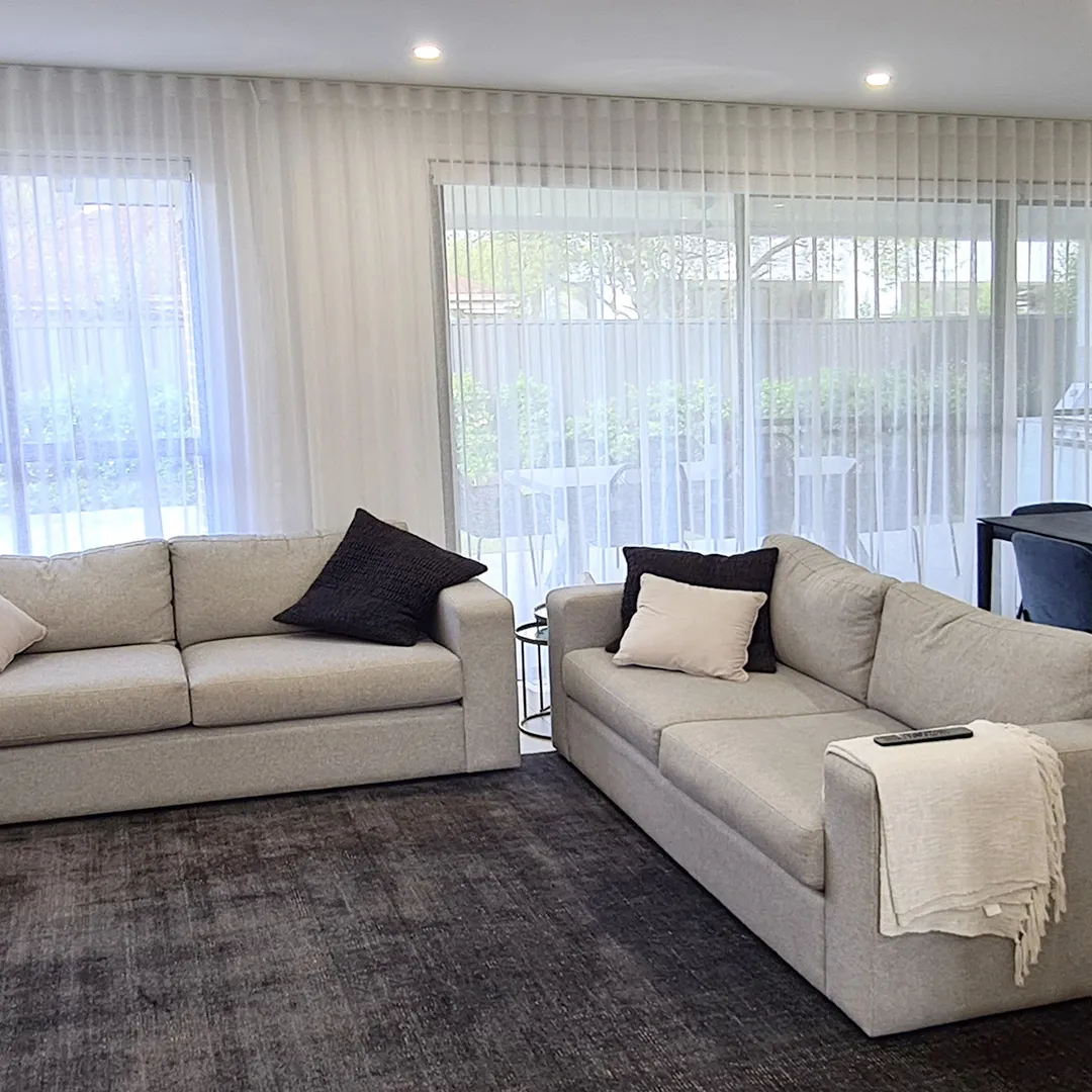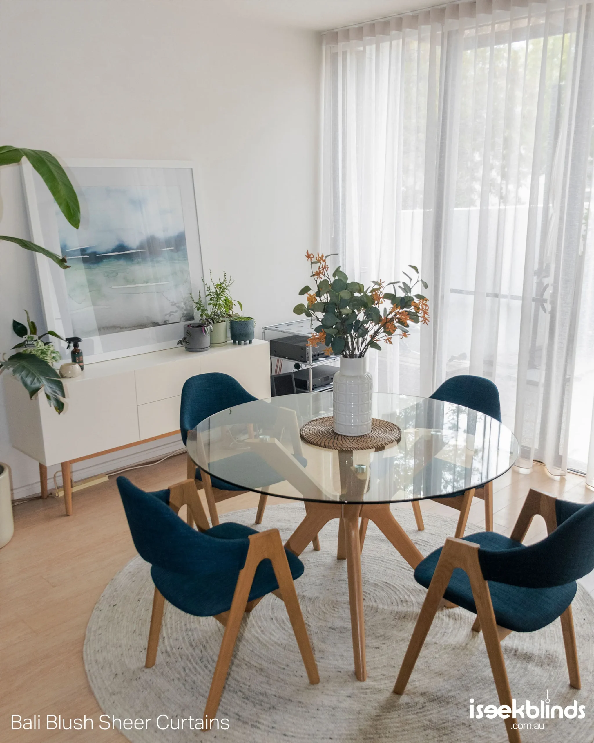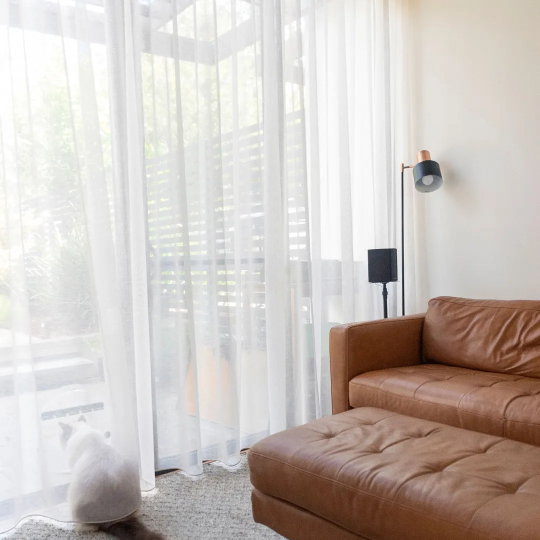 Renovating our 1880 two storey weatherboard Victorian home over the past 3 years has been a labour of love determining the paint colour scheme, wallpaper and finishes throughout. Whilst honouring the heritage of the home with period features like Victorian-style cornices, skirting, dado boards, fireplaces and etched coloured glass windows, we also wanted to create a comfortable, modern family feel to the home. With 3.2 metre high ceilings our decision to use iSeekBlinds for our window coverings was one of the best decisions we have made. The videos and information provided on the iSeekBlinds website along with the free fabric sample service provided all the information we needed to make the best choices and we could not be happier with the end result. The staff were extremely friendly and helpful whilst the entire process from ordering through to final installation was a breeze. The fabrics we chose throughout the home were Belmore Chalk Blockout curtains for the master bedroom (to be installed soon after the timber floorboards are polished), Bali Cloud Sheers for the open kitchen, dining and living room and Linesque Delta light filtering roller blind with pelmet for the study. All the curtains throughout are wall mounted and feature black rails to match the décor of our home where we’ve used black for the door handles, cupboard handles, light switches, power points and ceiling fans throughout. As well as the aesthetic beauty that the curtains have brought to each of the rooms, they have also created a feeling of calmness and serenity in our home, bringing together a diverse range of elements resulting in a cohesive styling outcome. Our iSeekBlinds curtains have added that ‘wow’ factor and the perfect finishing touch to create a stylish and sophisticated ambience to our lovingly restored Victorian home.