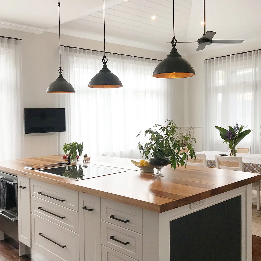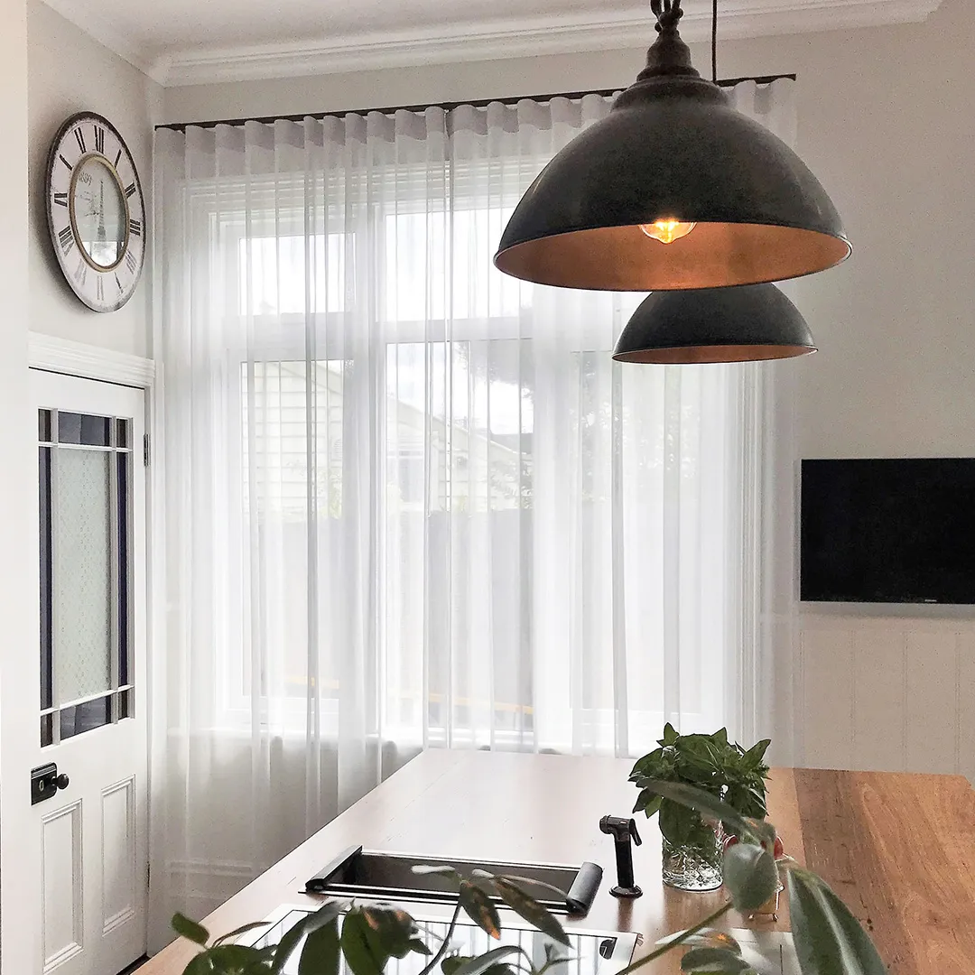 Renovating our 1880 two storey weatherboard Victorian home over the past 3 years has been a labour of love determining the paint colour scheme, wallpaper and finishes throughout. Whilst honouring the heritage of the home with period features like Victorian-style cornices, skirting, dado boards, fireplaces and etched coloured glass windows, we also wanted to create a comfortable, modern family feel to the home. With 3.2 metre high ceilings our decision to use iSeekBlinds for our window coverings was one of the best decisions we have made. The videos and information provided on the iSeekBlinds website along with the free fabric sample service provided all the information we needed to make the best choices and we could not be happier with the end result. The staff were extremely friendly and helpful whilst the entire process from ordering through to final installation was a breeze. The fabrics we chose throughout the home were Belmore Chalk Blockout curtains for the master bedroom (to be installed soon after the timber floorboards are polished), Bali Cloud Sheers for the open kitchen, dining and living room and Linesque Delta light filtering roller blind with pelmet for the study. All the curtains throughout are wall mounted and feature black rails to match the décor of our home where we’ve used black for the door handles, cupboard handles, light switches, power points and ceiling fans throughout. As well as the aesthetic beauty that the curtains have brought to each of the rooms, they have also created a feeling of calmness and serenity in our home, bringing together a diverse range of elements resulting in a cohesive styling outcome. Our iSeekBlinds curtains have added that ‘wow’ factor and the perfect finishing touch to create a stylish and sophisticated ambience to our lovingly restored Victorian home.