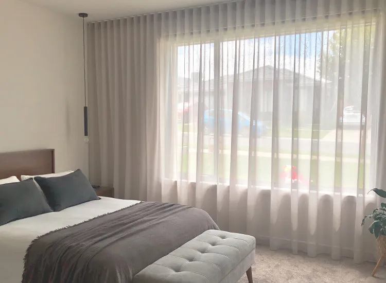 Sheer curtains can be paired with blockout curtains to achieve a layered, luxurious look. This style is perfect for bedrooms and formal living areas.